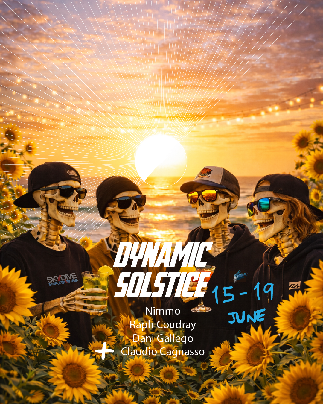 Dynamic Solstice is a 5-day dynamic freefly training camp designed for experienced skydivers to master fluid movement, advanced formations, and coordinated group flying. Timed to lead up to the summer solstice, participants will not only train with expert Fly Warriors coaches, including Guest Coach Claudio Cagnasso, but also celebrate with a beach jump and solstice party. Whether you want to work on precision, flow, and teamwork or push your dynamic flying to the next level, this camp provides structured coaching in small groups with a 5:1 participant-to-coach ratio.
